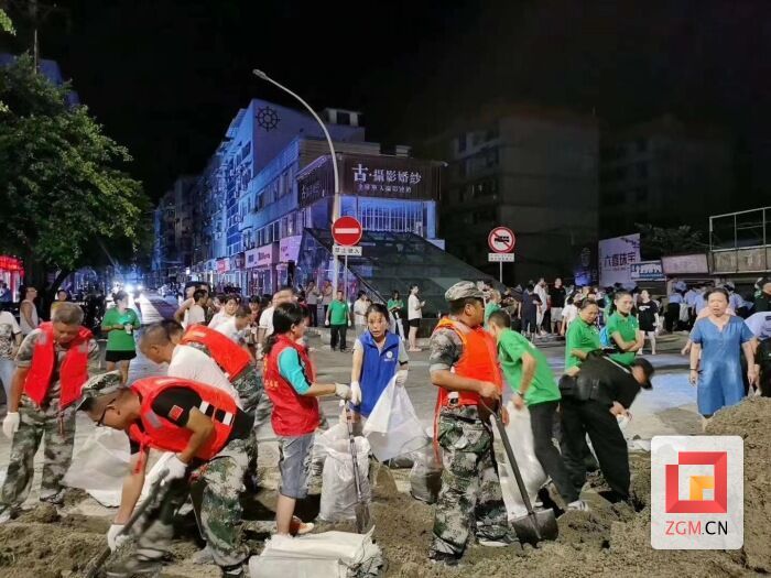 自贡网讯(记者 欧亚非)8月18日凌晨,富顺县武警官兵 、消防战士、民兵预备役官兵和广大党员干部、热心市民以及富顺公益联盟的100多名志愿者一起,共同投入防洪工作。(照片源自志愿者)