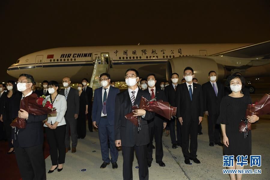 新华社北京8月17日电 8月17日晚,驻休斯敦总领事馆全体馆员乘包机抵达北京,外交部在首都机场举行简短庄重迎接仪式。国务委员兼外交部长王毅出席并讲话。