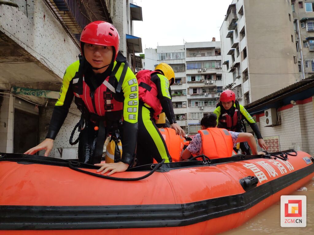 随着洪峰的逼近,其他各类险情也不断增多。18日早上7时许,牛佛镇胜利街不少地势低洼的地段被暴涨的江水淹没,消防救援力量在摸清现场情况后,迅速携带救生衣、水域救援专用漂浮绳、橡皮艇等装备,赶往沿街各房屋喊话,逐一营救疏散被困群众。