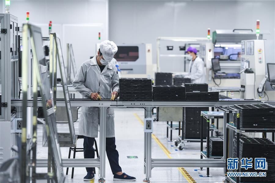 在深圳市龙华区一个工业区里,工人进行手机组装(2月18日摄)。新华社记者 毛思倩 摄