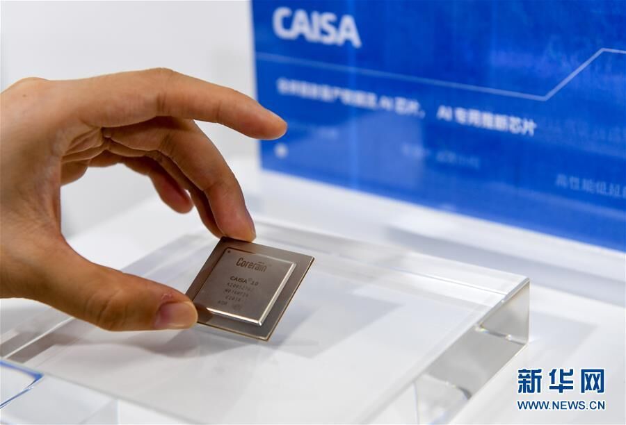 深圳鲲云信息科技有限公司的工作人员展示该公司研发的数据流AI芯片(8月12日摄)。新华社记者 毛思倩 摄