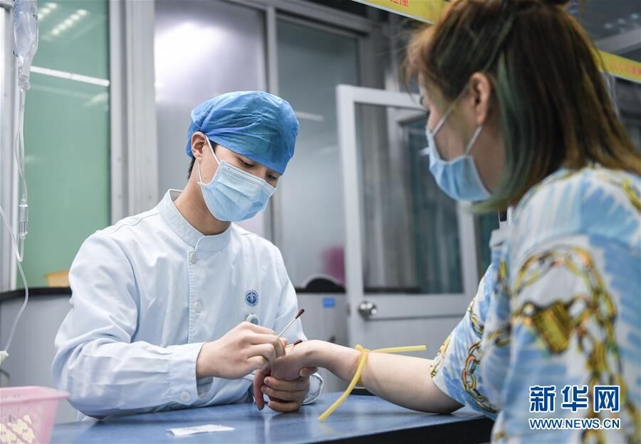 在北京大学深圳医院,急诊科的护士为患者输液(8月15日摄)。新华社记者 毛思倩 摄