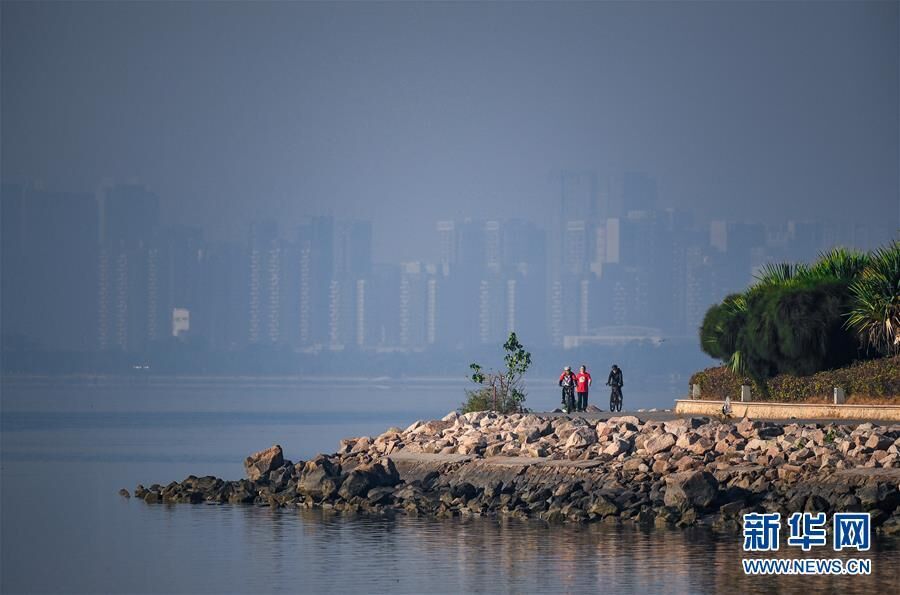 在深圳市南山区深圳湾公园,市民在海边锻炼(2019年12月11日摄)。新华社记者 毛思倩 摄