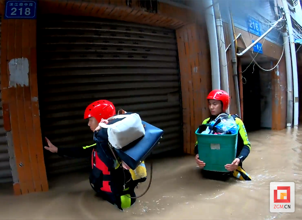 早上7时50分,富顺县顺城街老燃气公司旁一宿舍楼出现险情,3名群众被暴涨的河水困在家中,其中包括2名头发花白的老人。考虑到沱江水位不断上涨,群众处境十分危险。当地消防救援力量第一时间赶到现场,在做好自身安全防护的同时,徒步趟过齐腰深的洪水将3名被困者背出。
