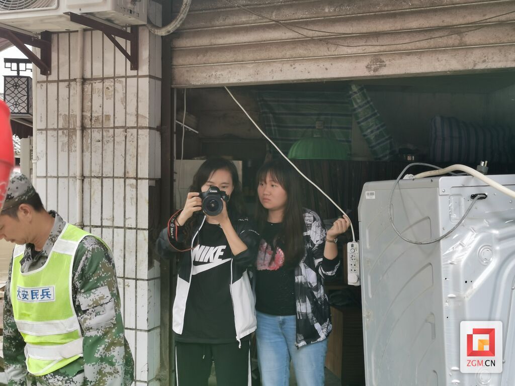 “武警去哪儿,我们就跟到哪儿。”8月18日6点过,自贡网记者周航宇和自贡日报采访中心记者郑鑫玉从市区出发,冒雨来到沱江在我市洪峰过境的第一站富顺县狮市镇。“物资已撤离,群众已疏散,正密切观测水位。”坐上武警官兵的皮划艇、小心翼翼越过水面上的电线,两名记者分工合作,采访和拍摄了大量的文字、照片、视频。