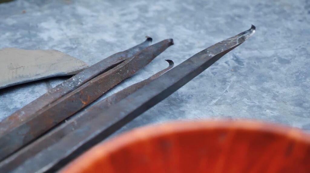 扎西巴珠自制的各种刀头。新华网 旦增努布摄