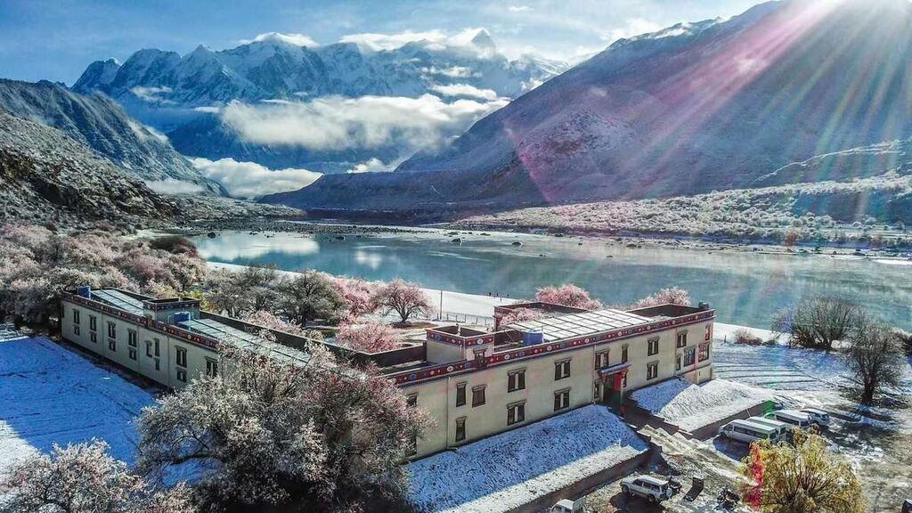 公尊德姆农家乐位于林芝市米林县派镇雅鲁藏布江大峡谷景区,这里水连着山,山连着天,云雾沿着山坡缓缓倾泻,仿佛为山川蒙上了一层白色面纱。