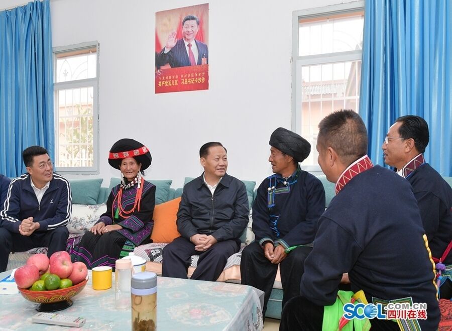 8月19日,省委书记彭清华到普格县特补乡甲甲沟村调研,了解新村集中安置点建设、便民服务水平提升、脱贫后“四个不摘”政策落实等情况,到村民沙马日各新居家中走访看望。