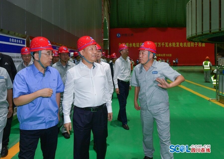 8月18日,省委书记彭清华到位于我省宁南县和云南省巧家县交界处的白鹤滩水电站调研,在左岸地下厂房了解建设进度,观看由东方电气集团研制的世界首台百万千瓦水轮发电机组转子吊装。