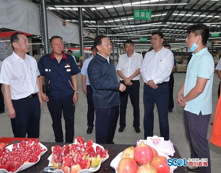 8月17日,省委书记彭清华到会理县万顷农产品物流公司调研,了解发展专业物流配送,打通农产品产销对接“最后一公里”情况。