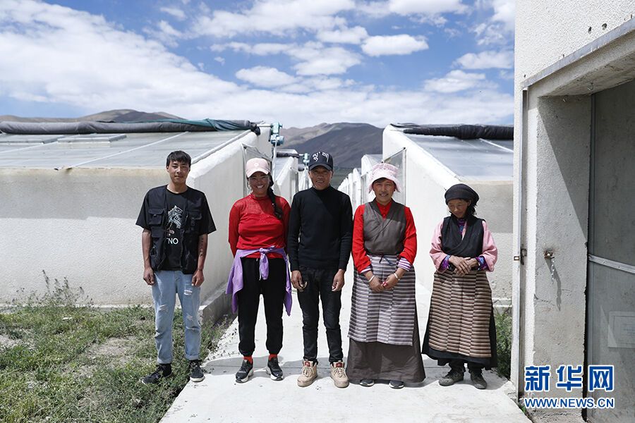 格桑的哥哥次仁(左一)和他所在的种植小组成员合影。新华网记者焦鹏 摄