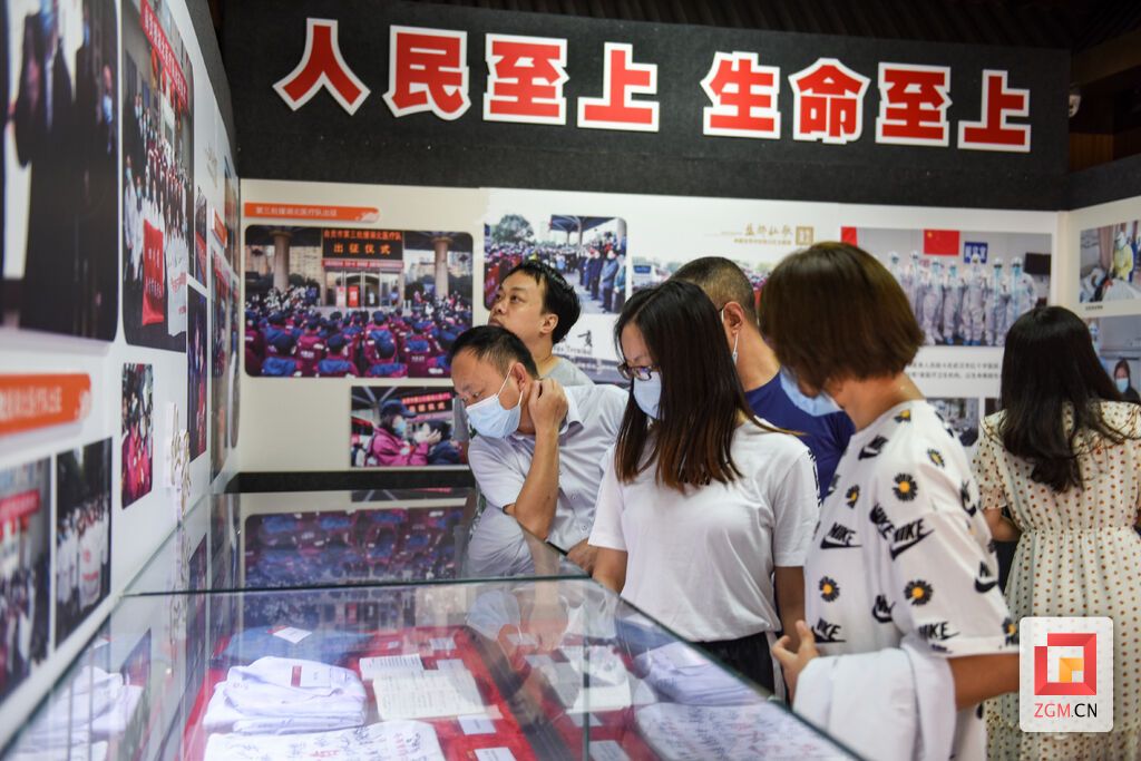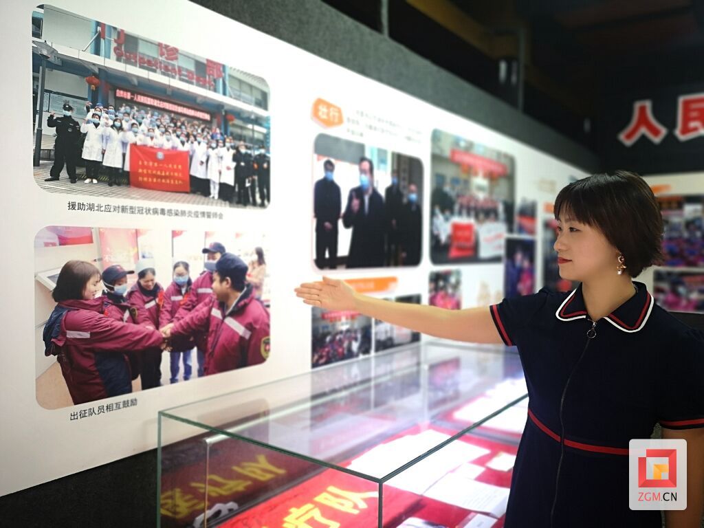 在展厅一面高墙上,一张出征队员的照片让人动容,七名来自市四医院的医护人员在奔赴湖北前,相互鼓励打气。照片中主角之一的曹小燕长久驻足在此,思绪又回到了战役时刻。“我们是自贡第一批援鄂医疗队队员,大家亲切地叫我们‘最美七侠’,我们自称为七个‘葫芦娃’,葫芦娃们个个身怀绝技,能团结一心、携手并肩、永不言败。”曹小燕说,七个“葫芦娃”就像相亲相爱的兄弟姐妹一样,相互鼓励、照顾着走过了53个援鄂的日日夜夜。