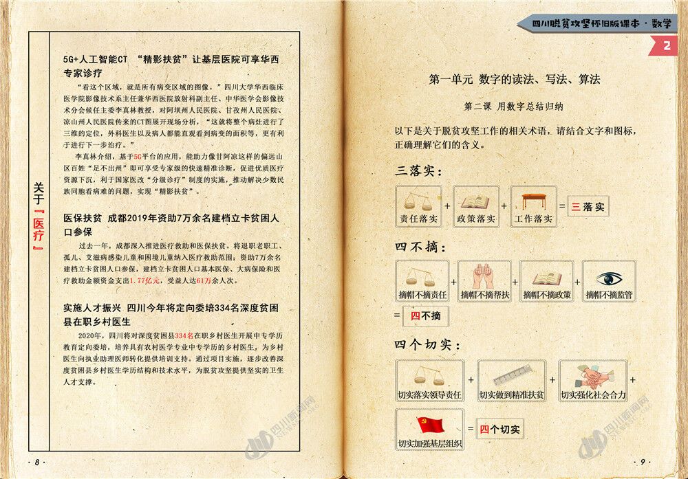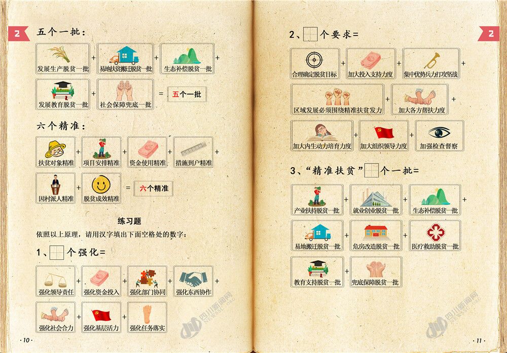 四川新闻网成都8月26日讯 又是周三啦?说好的脱贫攻坚小课堂如期而至!目前,打赢脱贫攻坚战进入最后冲刺的关键阶段,四川还有很多硬仗要打,很多“硬骨头”要啃,防止返贫致贫任务繁重,脱贫攻坚工作力度还需要加强,面临的困难和挑战依然十分艰巨。为了深入推进精准扶贫精准脱贫,夺取全省脱贫攻坚收官之战全面胜利,本课采用上一课刚刚学到的数字来总结归纳了脱贫攻坚政策和方法的关键知识点,以便让广大同学进一步掌握这些政策、运用这些方法,提高政策受益覆盖面及知晓率,确保各项政策落到实处。