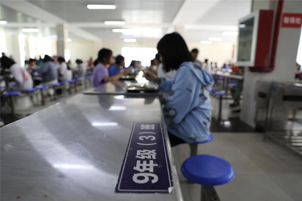 在晴隆县第六中学,学生们在食堂按照分班就座的方式用餐(8月25日摄)。新华社记者 杨欣 摄