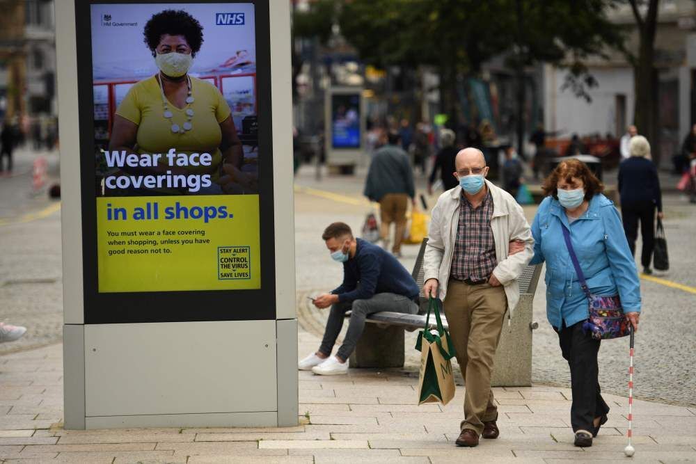 7月24日,在英国设菲尔德,人们戴口罩走在街上。(新华社/法新)