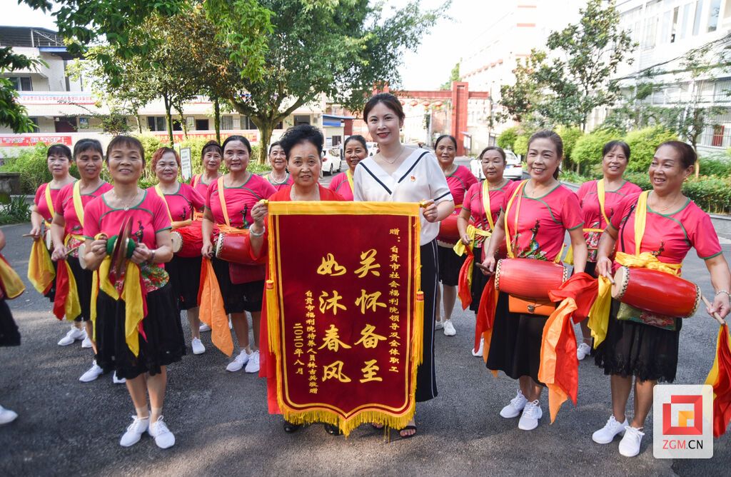 9月1日上午8时许,一支由近20名“婆婆”组成的腰鼓队,从贡井城区最西边的长征大桥,一路“敲锣打鼓”步行将近一个小时,来到最北边的虎头桥,将一面“关怀备至,如沐春风”的锦旗送给了自贡市社会福利院(以下简称福利院)全体职工。
