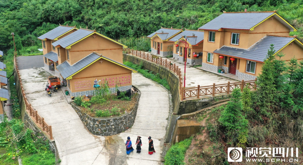 图:马边县荣丁镇后池村村民走在新村中