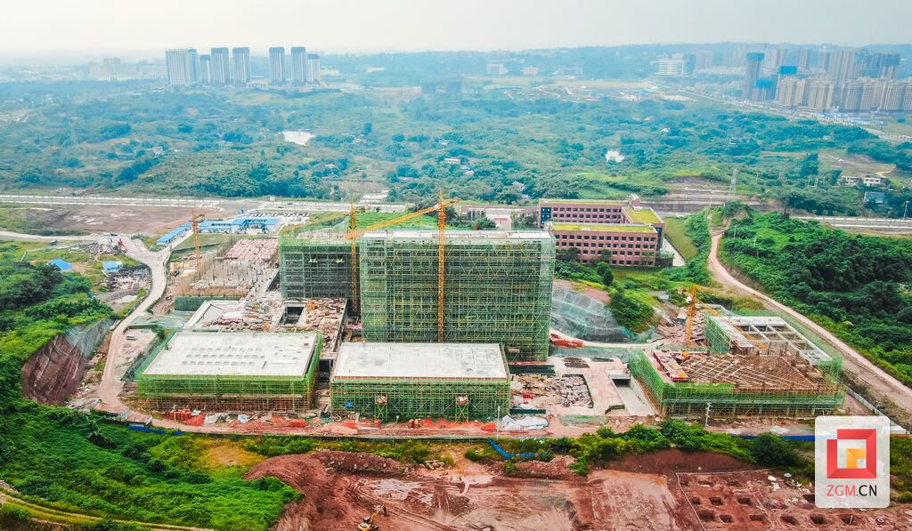 9月9日,在位于大安区新民镇燎鹅路北侧的市委党校新校区二期多功能配套服务区工程项目建设现场,记者看到,会议中心主体结构已基本浇筑完成。宴会厅、中餐厅屋面构造层全部完成,砌体完成90%。宿舍楼主体全部完成。酒店主体完成8层,9层支模架正在施工中。