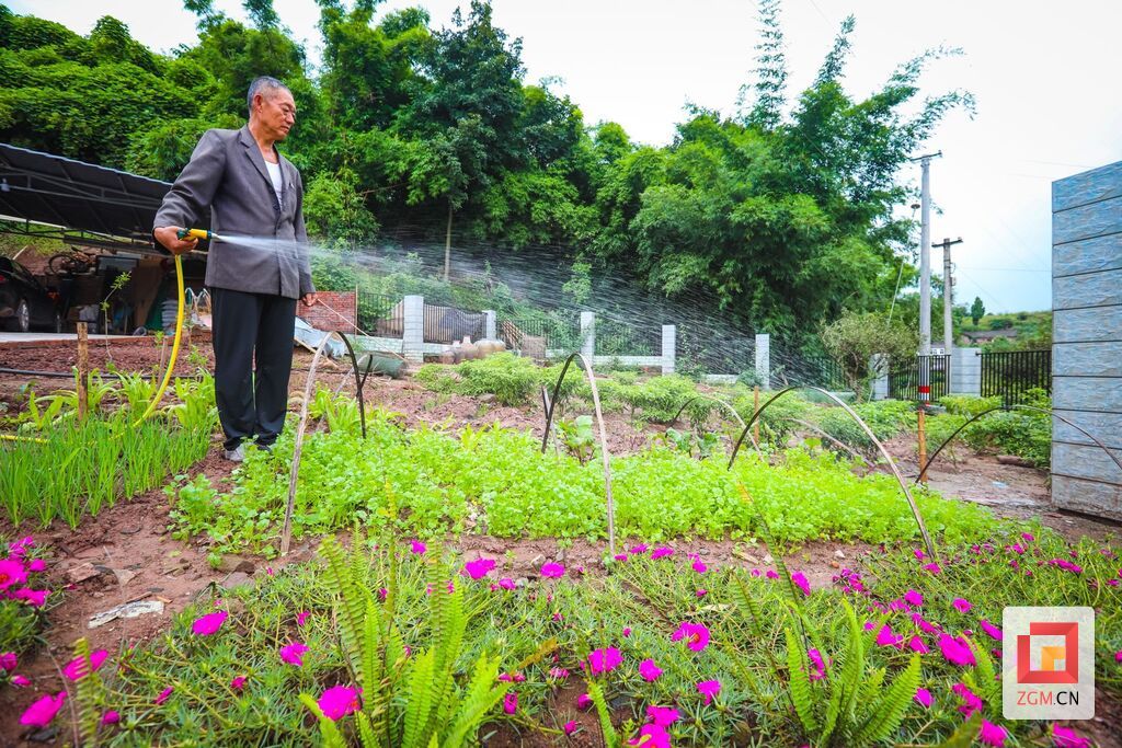 推开崭新的黑条铁门,淡绿色墙砖衬托洁净的院落全景。香菜、葱子、魔芋、海椒、红苕、玉米、花生……门前近半亩的菜园子几乎让老陈家的餐桌“样样有”。媳妇抱着刚诞下的双胞胎踱步哄觉,老伴系着白色围裙忙里忙外。倚山修建的灰墙新房前,大大小小的衣服挂了几杆子,屋后刚建成的假山鱼池,记录了儿子艺术设计师的身份……农家院落花草相伴,瓜果飘香,铅尘不染。陈先贵说,这就是他向往的小康生活。(记者 缪静 宋姿熠 文/图)