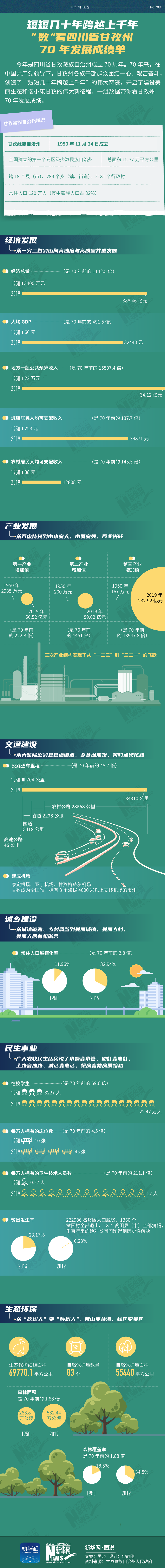 今年是四川省甘孜藏族自治州成立70周年。70年来,在中国共产党领导下,甘孜州各族干部群众团结一心、艰苦奋斗,创造了“短短几十年跨越上千年”的伟大奇迹,开启了建设美丽生态和谐小康甘孜的伟大新征程。一组数据带你看甘孜州70年发展成绩。
