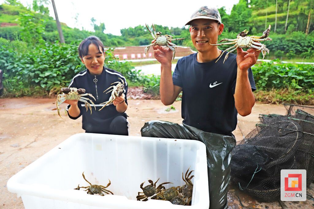 金盘村大闸蟹养殖场是镇里的返乡创业示范点,“返乡成就梦想、创业反馈家乡”的大幅标语格外惹眼。“我这里的苗子全部是从江苏无锡空运过来的,每斤成本要投50元左右。”曾友能在江苏养蟹多年,谈及这些张牙舞爪的宝贝,无不如数家珍。