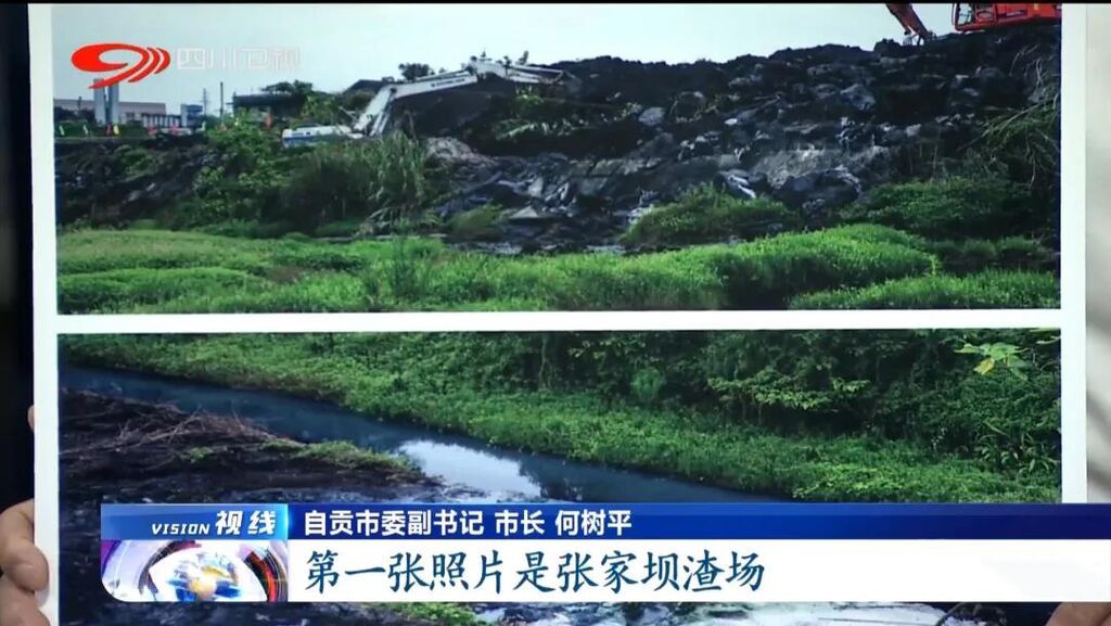 自贡市委副书记、市长 何树平:是的,这个隐患很大。这里我给大家展示两张照片,第一张照片是张家坝渣场,是含钡的工业废渣,上个世纪30年代又一直堆放在一个地方,因为没有经过任何处理的话,那么它的渗漏液就对河流造成了很大的污染。另外一张照片,这是城区的一张照片,大家看到我们的散乱污企业是任意的摆放,那么其实当时很多的工业废水和生活用水也是直接的在排放,那么也造成了河流的极度污染,特别对老百姓的生活影响很大,我们深刻地认识到绝不能再以牺牲环境为代价来换取经济一时的发展。市委市政府以前所未有的力度坚决的整治环保问题,这是我下面想给大家介绍的我们的有“言”有“为”。