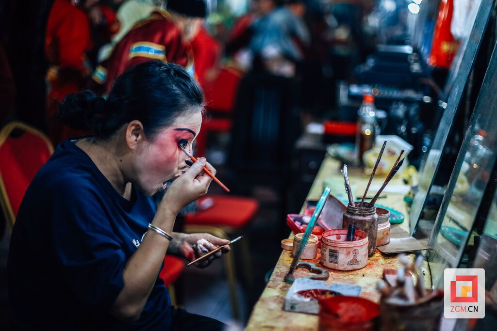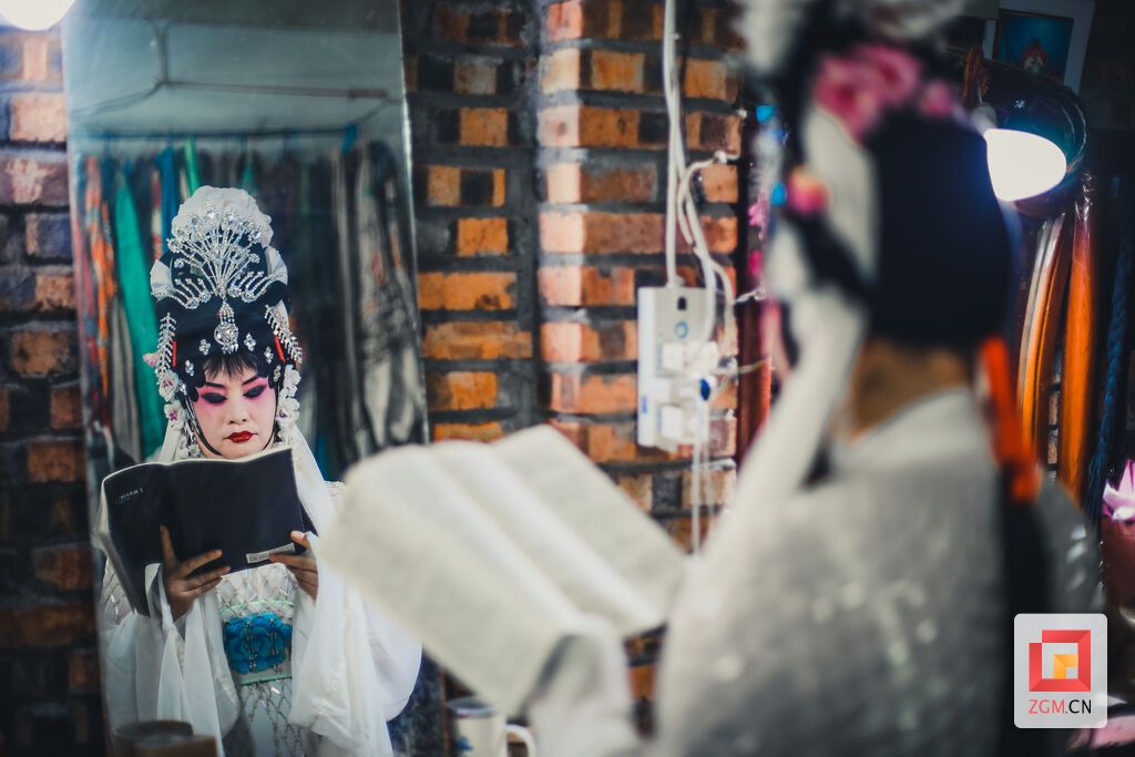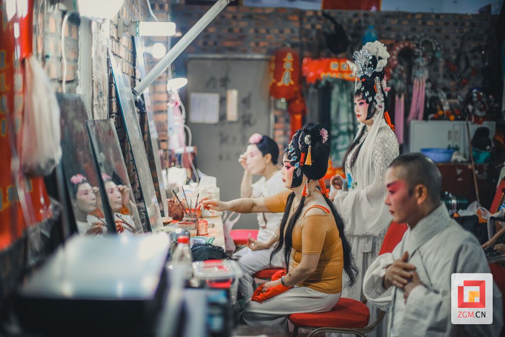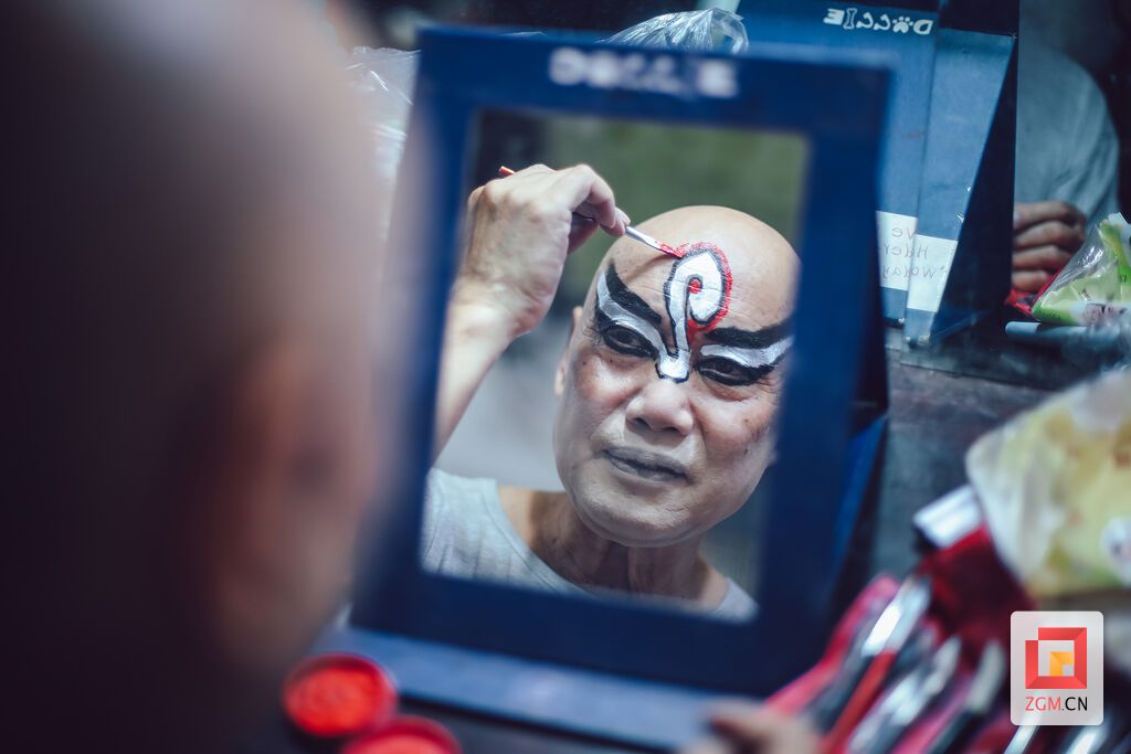上粉、涂脂、描眉,画眼、勾脸、定妆,每次演出前,演员们认真化妆、穿戴、试嗓的画面,总能让旁观的视线,感动于他们的全情投入,感慨于他们一生的坚守。