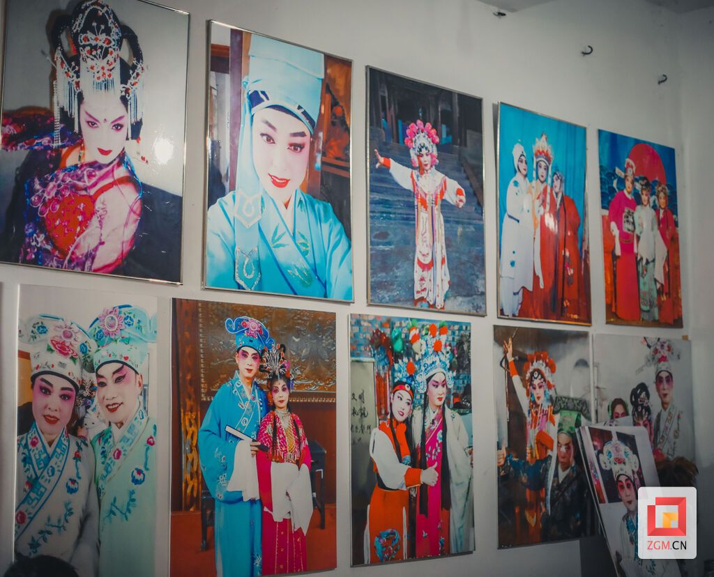 图:每位来剧团演出的演员,曾丽莉都会有心地为其留下剧照。满墙的照片,回味无穷。