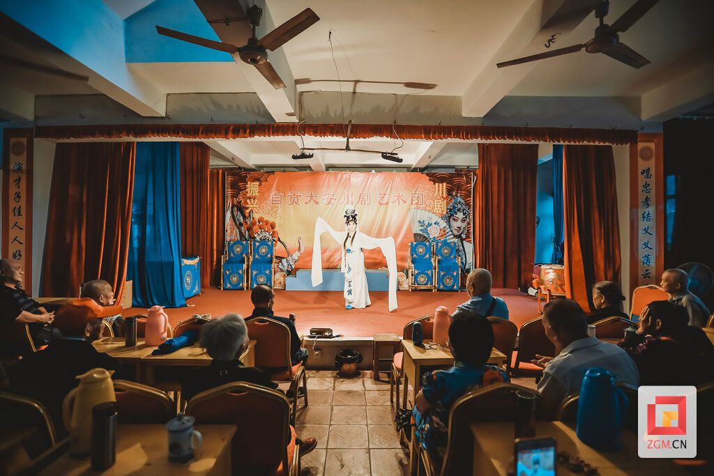 图:大安是名副其实的“戏窝”。因为曾经的盐业辉煌,集聚成千上万的老盐工。他们之中,好多都是在“神仙岛”听着戏过来的,人多时,每天会有三四百人听戏、品茶。![]()