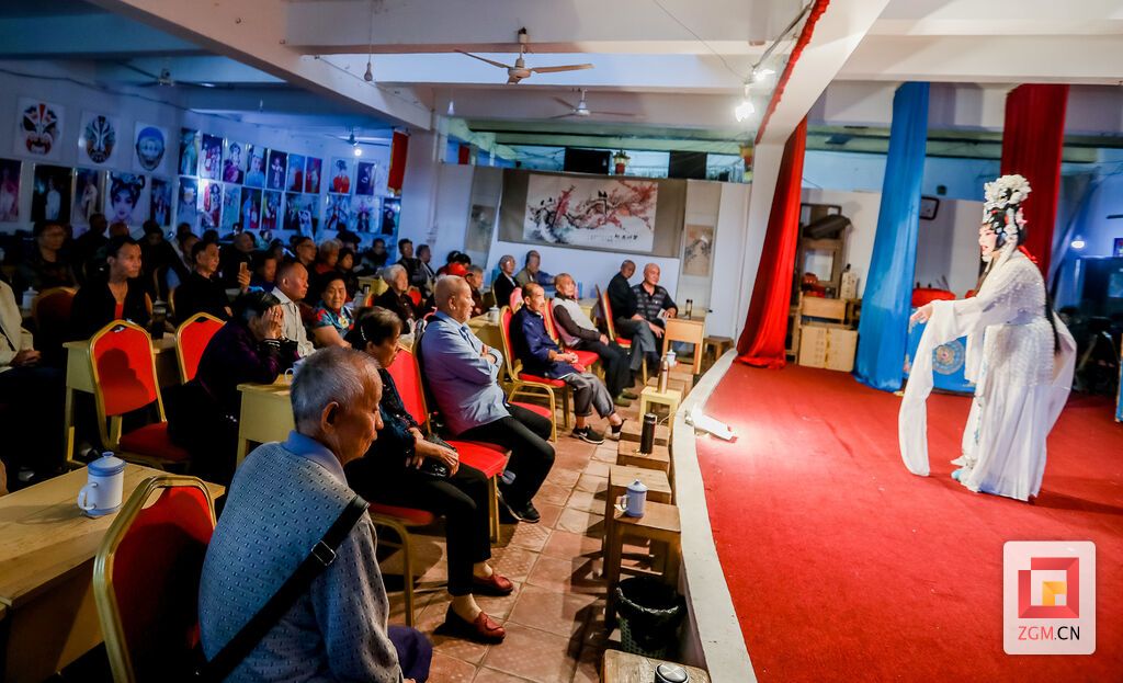 下午两点,“听川剧的”又开演了。搬家后改名的“大安川剧艺术团”,隅居大高路10路公交站旁一便利店二楼,场地虽不太起眼,但再一次闻名圈内。当锣鼓声和高昂的帮腔声响起,不断有年迈的身影落座。