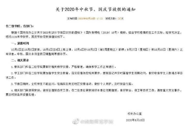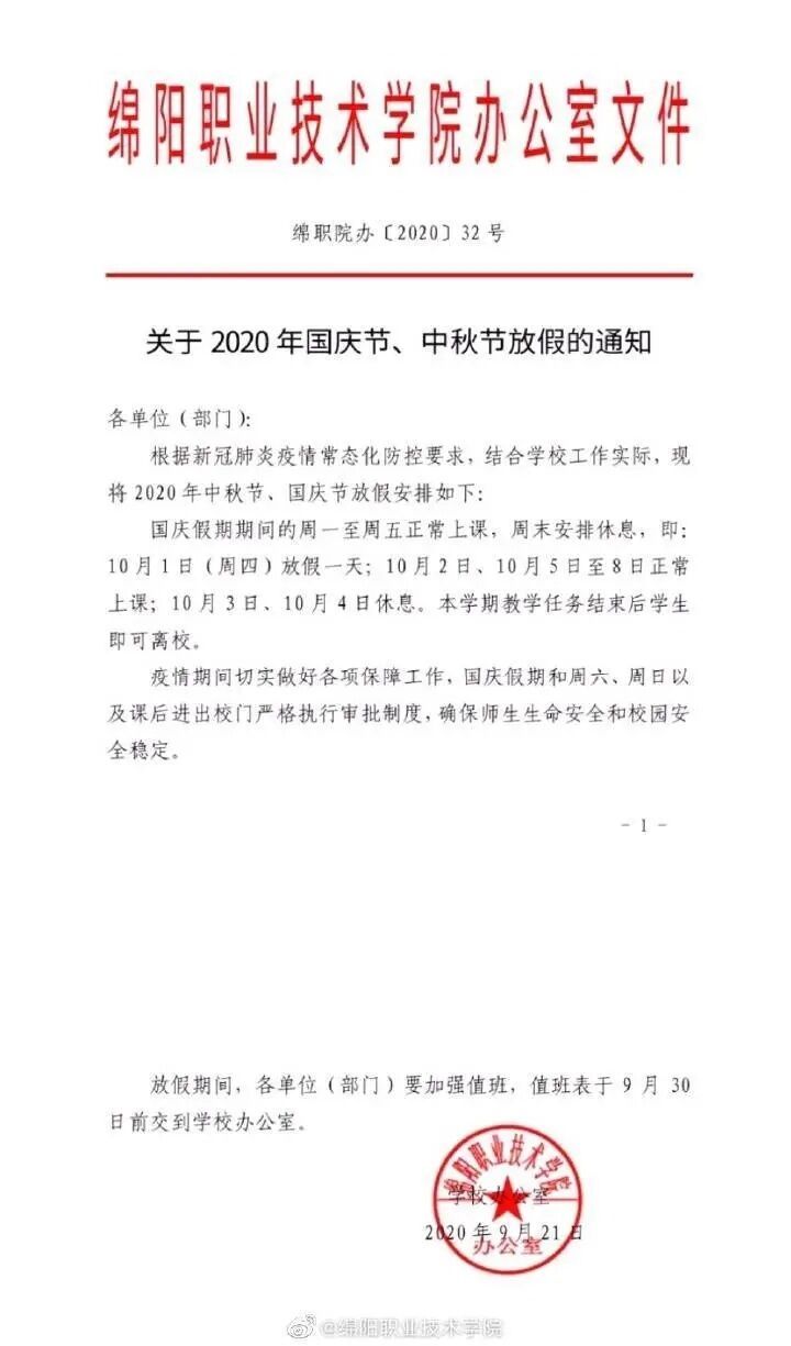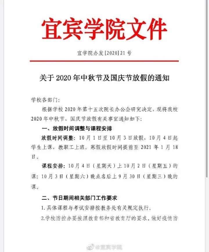 放3天的有绵阳师范学院、宜宾学院、成都纺专、绵阳职业技术学院等。具体如下图: