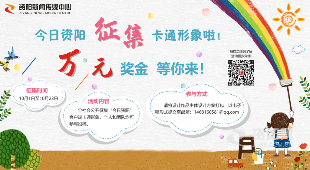 资阳网讯(胡莹)为着力打造“今日资阳”客户端品牌形象,提高品牌辨识度,适应多平台、多形式推广和宣传,资阳新闻传媒中心(资阳日报社·资阳广播电视台)将于10月1日起,面向社会,公开征集“今日资阳”客户端卡通形象。
