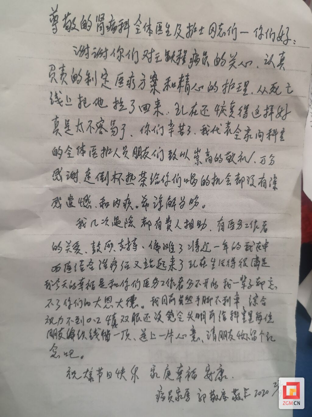 记者随手拿了一封感谢信,字迹工整,言语质朴,情真意切。“谢谢你们的精心救治和悉心护理,把他(王跃程)从死亡线上拉了回来,现在还能恢复得这么好,真的太不容易,你们辛苦了……”每封信最后,都还有郭敬容送上的祝福。