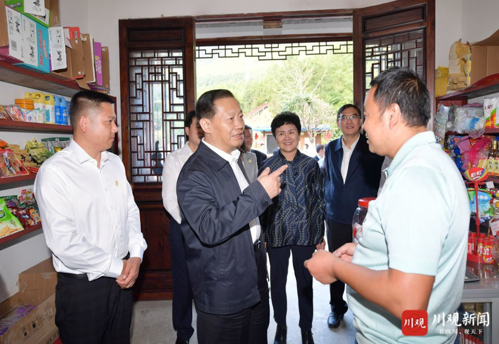 八台镇天池坝村蒋家湾,是一处易地扶贫搬迁集中安置点,依托大巴山地质公园和八台山旅游景区,建设了以茶文化为特色的旅游小镇。彭清华步行察看街巷风貌,走进已脱贫群众杨久坤经营的特色小吃店和临近的小超市,与大家亲切攀谈,细致询问商品种类、经营收入、游客接待及脱贫政策享受等情况。他对乡亲们生活发生的变化感到欣慰,勉励大家积极投身旅游小镇建设,满腔热情为游客服务,通过勤劳双手增加收入。彭清华指出,达州资源富集、历史厚重,是巴文化发祥地之一,文旅融合发展潜力巨大。要乘着我省推动文旅经济高质量发展的东风,积极参与巴蜀文化旅游走廊建设,不断建强文旅品牌,培育形成更多经济增长点。