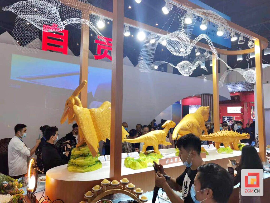 记者了解到,以“还原百年经典,传承盐帮文化”为主题的自贡馆在展会中尤为抢眼,整个展馆以博物馆形式,展示“盐帮菜文化”,设计上融合盐、龙、灯、食自贡城市元素,打造盐场盛景,讲述盐帮菜历史。同时,配以“水幕投影”高科技产品,动静结合,匠心独运。