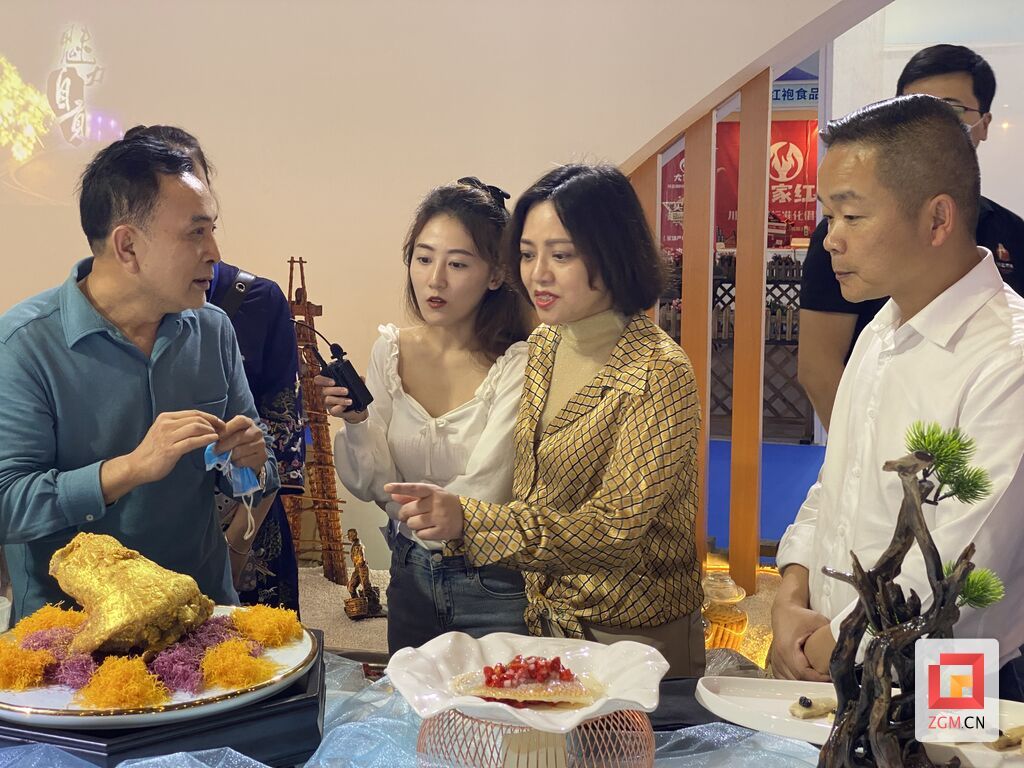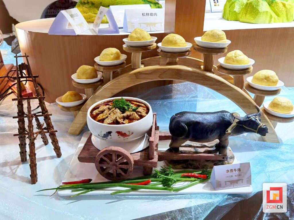 “哇,看得我咽口水”“快来看,这个就是我们上次到自贡吃过的”……自贡主题馆内,中间长达10米的巨型餐桌摆放了30余种特色盐帮菜,迎来了众多观众的啧啧称赞。“女儿泡菜”“熊掌牛蹄”“盐帮蘸水菜”“黄油雕”“金丝面”“一品鸭”等传统盐帮美食更是引来了业内美食达人,以及网络媒体的争相报道。