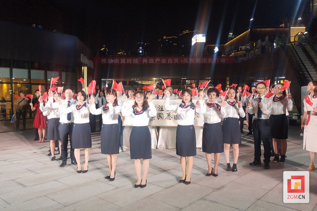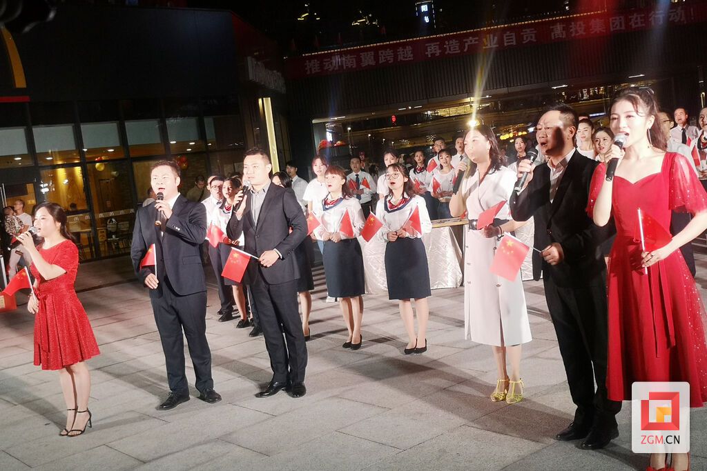 10月1日晚,夜幕降临,华灯初上,自贡高投集团有限公司51名党员职工齐聚南悦里音乐喷泉广场,用歌舞、朗诵、书法礼赞的方式,高声歌唱《新的天地》,把对祖国的美好祝愿通过歌声传递,用青春风采祝福祖国。