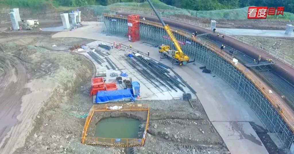 丹桂互通立交、梁家坝互通立交、C段综合管廊是G348富荣产城项目控制性工程。梁家坝互通立交作为项目首位重难点控制性工程,主要包括12条主线桥及匝道桥,桥梁全长2953.9米,桥梁面积34453平方米,下部结构采用双柱墩、花瓶墩、肋板台、桩基础,目前工程进展顺利。