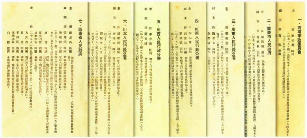 ▲西南军政委员会及重庆、川东、川西、川南、川北、西康等省(区、市)政府机构组成人员名单