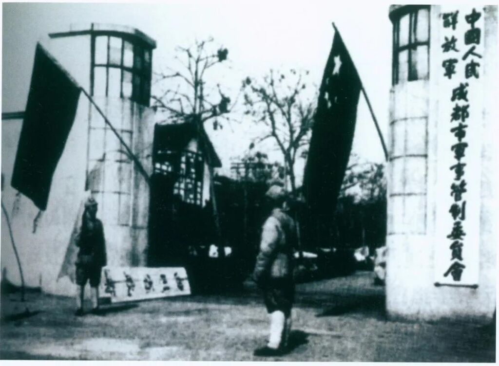 ▲摘下国民党四川省政府的牌子,挂上中国人民解放军成都市军事管制委员会牌子