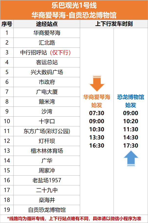 超长国庆大假的最后一天,记者从自贡公交集团获悉,作为自贡打造的公交与旅游深度融合的休闲旅游文创项目——自贡乐巴(城市旅游观光巴士铛铛车”),从10月9日起,将开始执行常规票价,即线上购票(“自贡乐巴”微信小程序)工作日每人次4.9元、双休或节假日每人次6.9元;线下(刷卡、扫码、投币)购票工作日每人次7元、双休或节假日每人次10元。
