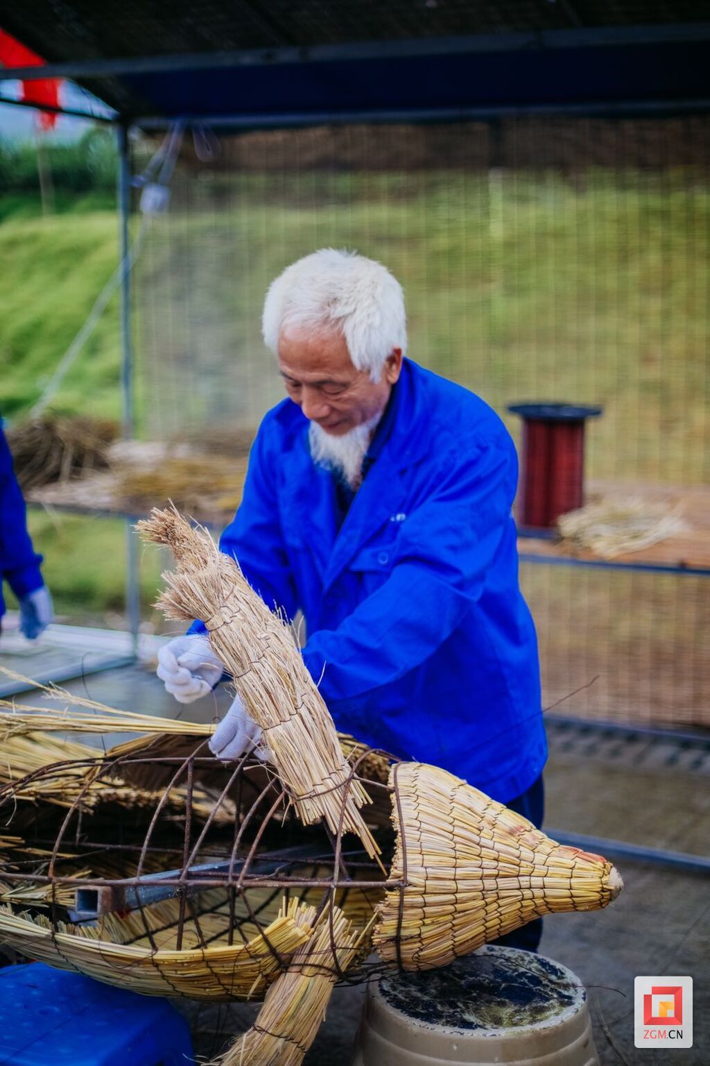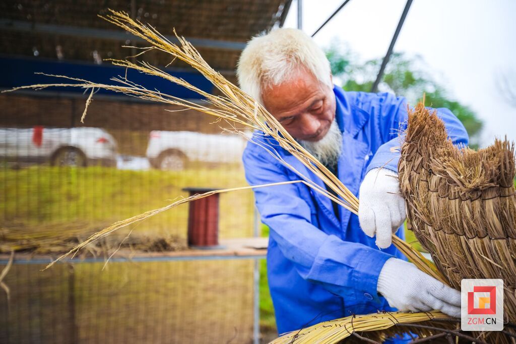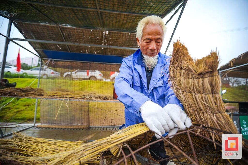 直到四年前,当地党委政府引进自贡彩灯之乡文化产业集团公司,利用稻草为原料,变废为宝,通过彩灯的丝架制作技艺与废弃稻草的完美结合,创造出的一种崭新的文创艺术品,罗声道的草编手艺才派上了用场,结束了在外打工的日子,实现了家门口务工。