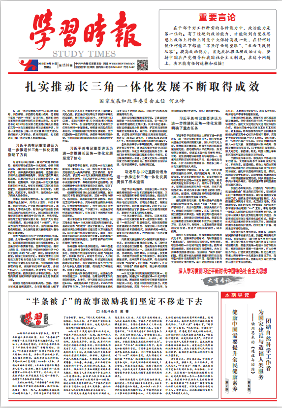 习近平总书记重要讲话为进一步推进长三角一体化发展指明了方向