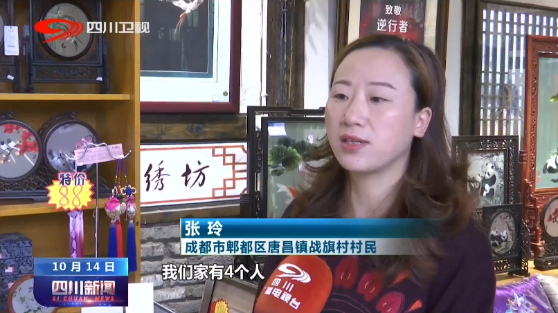 成都市郫都区唐昌镇战旗村村民张玲说:“村上根据我们土地入股的亩数,我们家有4个人,每年能够分到5000块钱左右,年底还有集体经济分红2000块钱左右。我就在蜀绣坊上班,我老公在村上上班,我妈妈在家里面做民宿,这样比以前种地时候收入高了很多。”