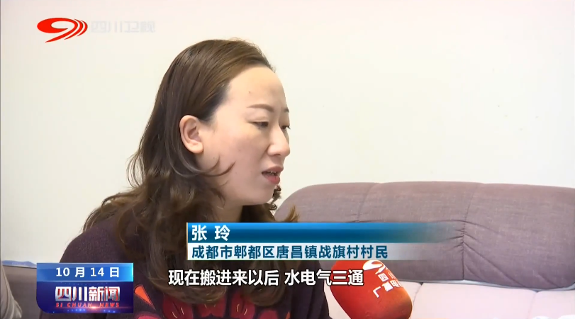 成都市郫都区唐昌镇战旗村村民张玲说:“现在搬进来以后,水电气三通,以前我们散居的时候,洗个澡烧水都要烧很久。(现在)绿化很漂亮, 村上的物业这些都有专门的管理人员。”