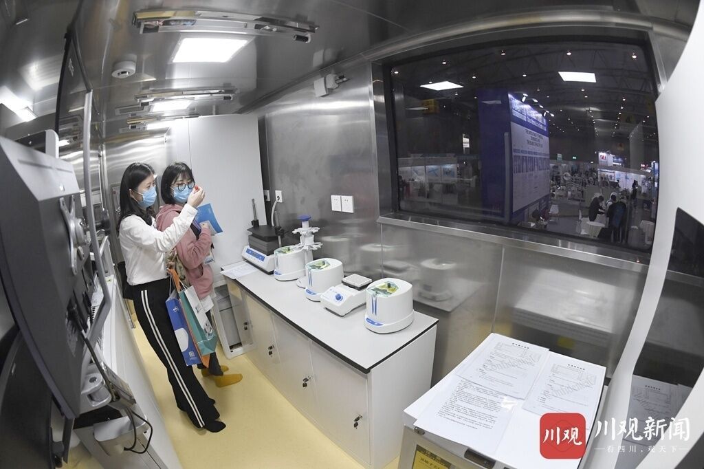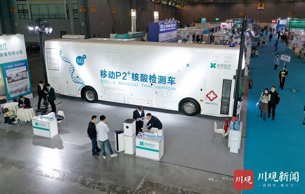 10月15日,首届四川国际医疗防疫物资博览会在成都世纪城新国际会展中心4号馆开幕,云集了各种防疫物资及产品,其中一款格力新能源移动P2+核酸检测车成为了全场最大的焦点。