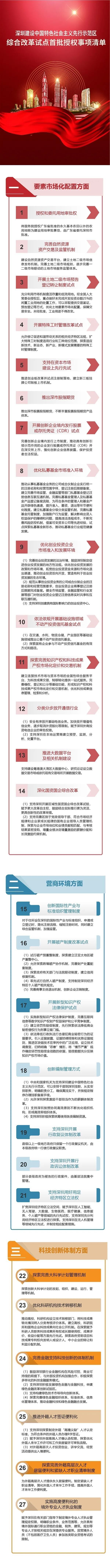 近日,中共中央办公厅、国务院办公厅印发了《深圳建设中国特色社会主义先行示范区综合改革试点实施方案(2020-2025年)》,同时以附件形式印发了首批授权事项清单,并发出通知,要求各地区各部门结合实际认真贯彻落实。