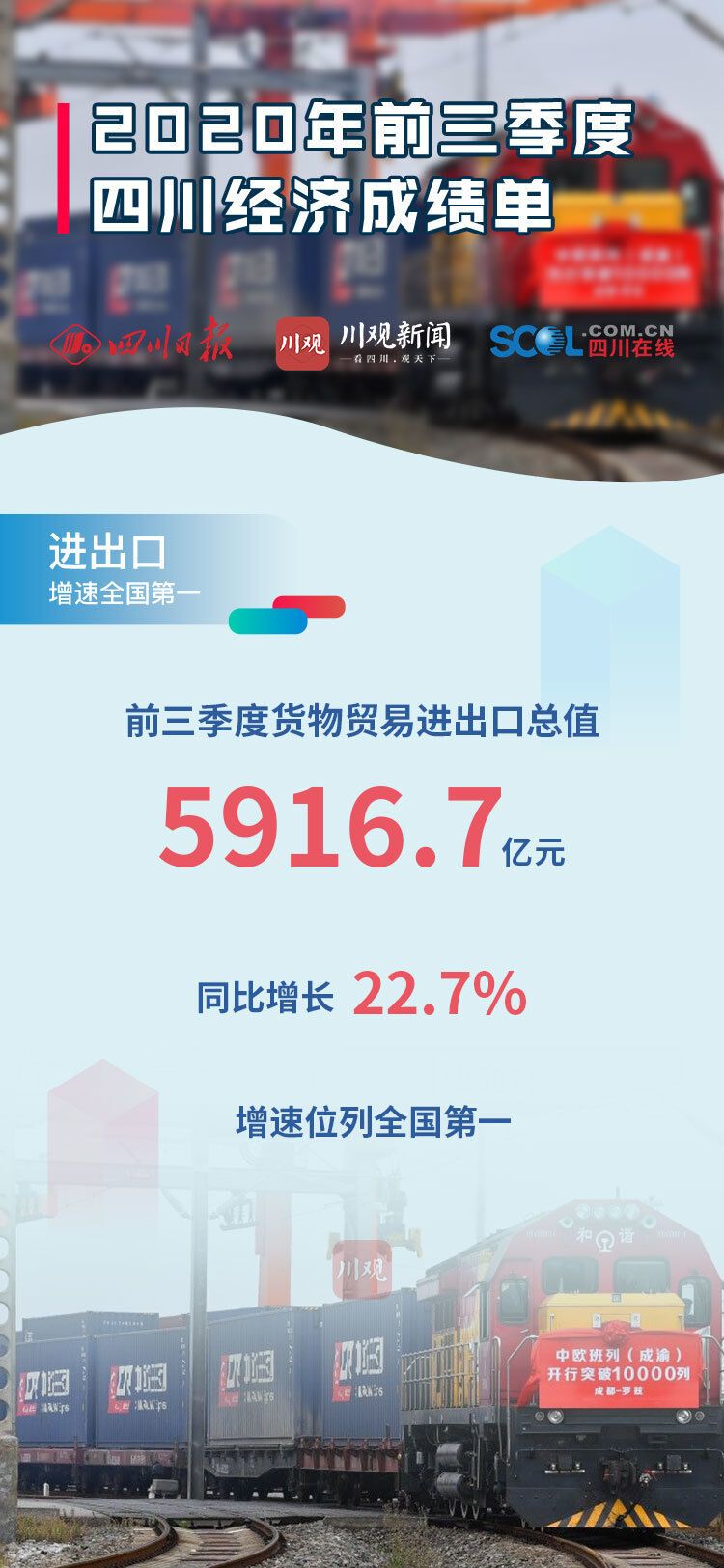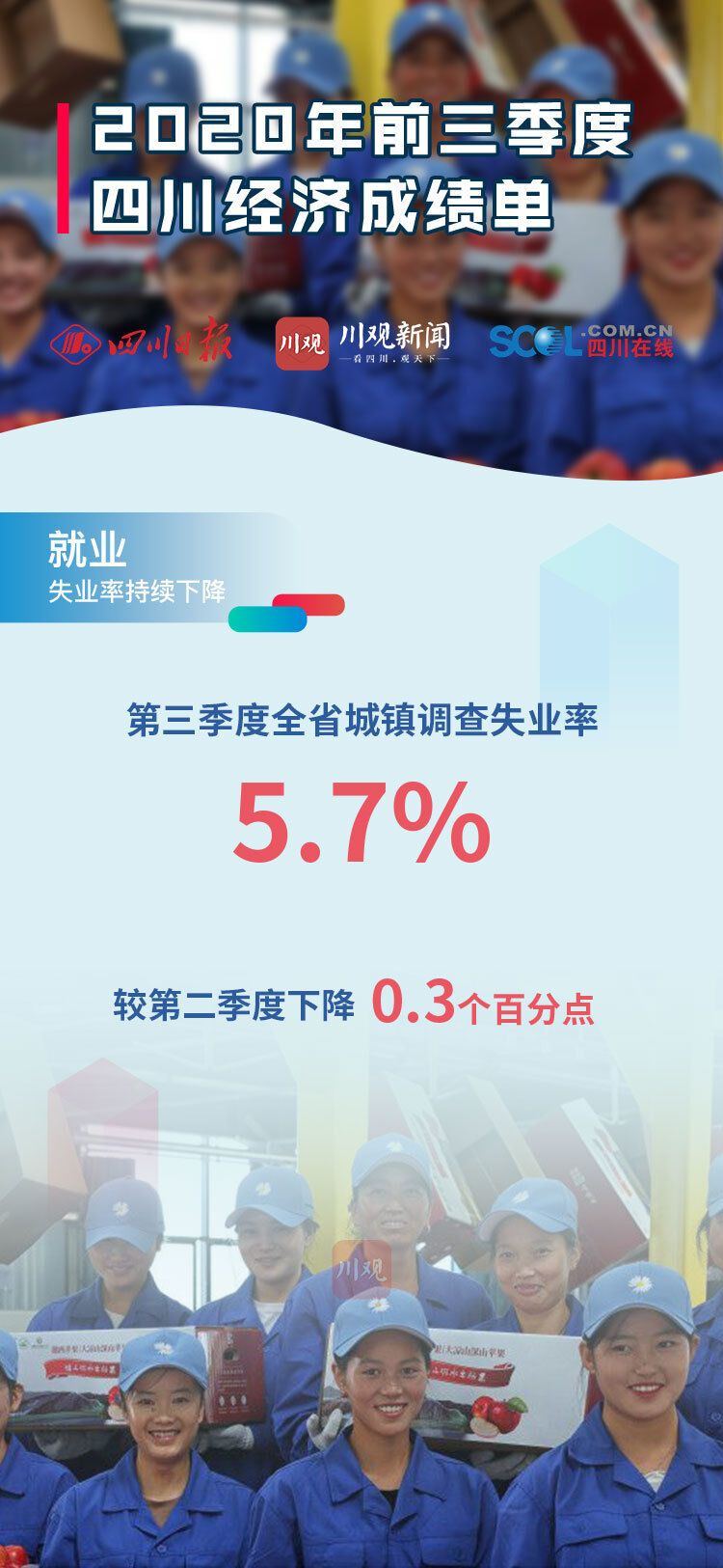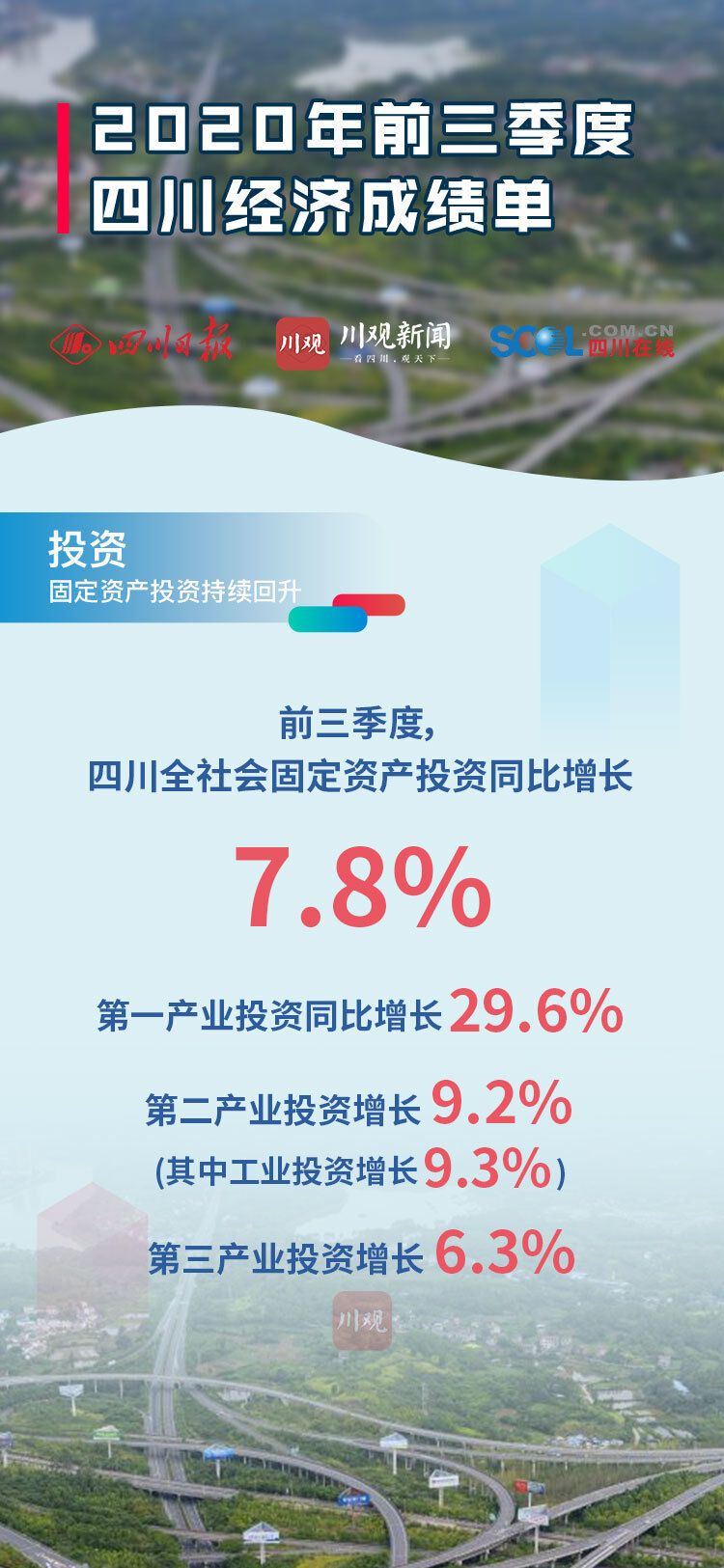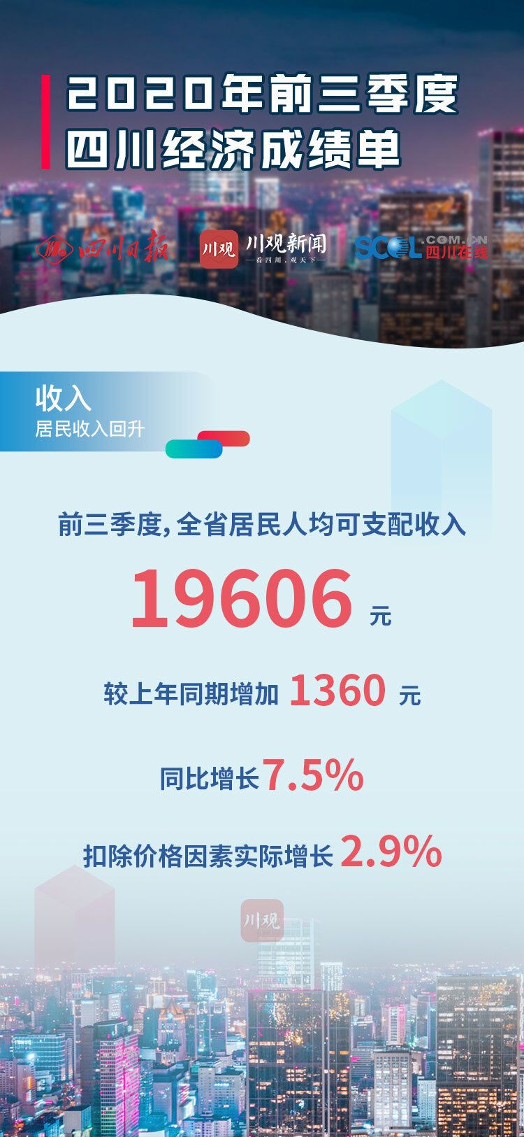 10月20日四川发布2020年前三季度经济“成绩单”,前三季度全省地区生产总值(GDP)34905.0 亿元,同比增长2.4%。前三季度四川经济主要指标恢复情况如何?川观新闻发布9张海报,带你看懂“成绩单”!