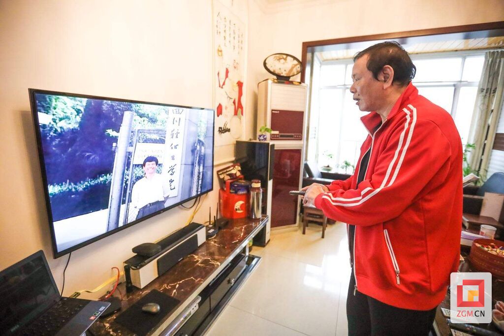 10月12日,当记者踏进董子林的家中时,电视机里正切换播放着一些老照片,从照片的色彩以及人物的衣着、周围的环境不难看出,这些照片已经有了一定的年代。伴随着悠扬婉转的配乐,董子林在电视机面前认真地观看着。看到记者走近,他连忙按住了暂停键。