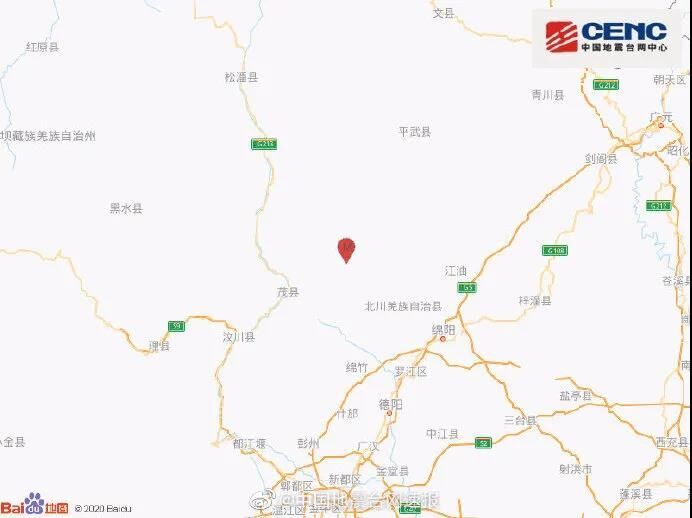 据悉,震中距北川县14公里,距绵阳市64公里,距成都市133公里。